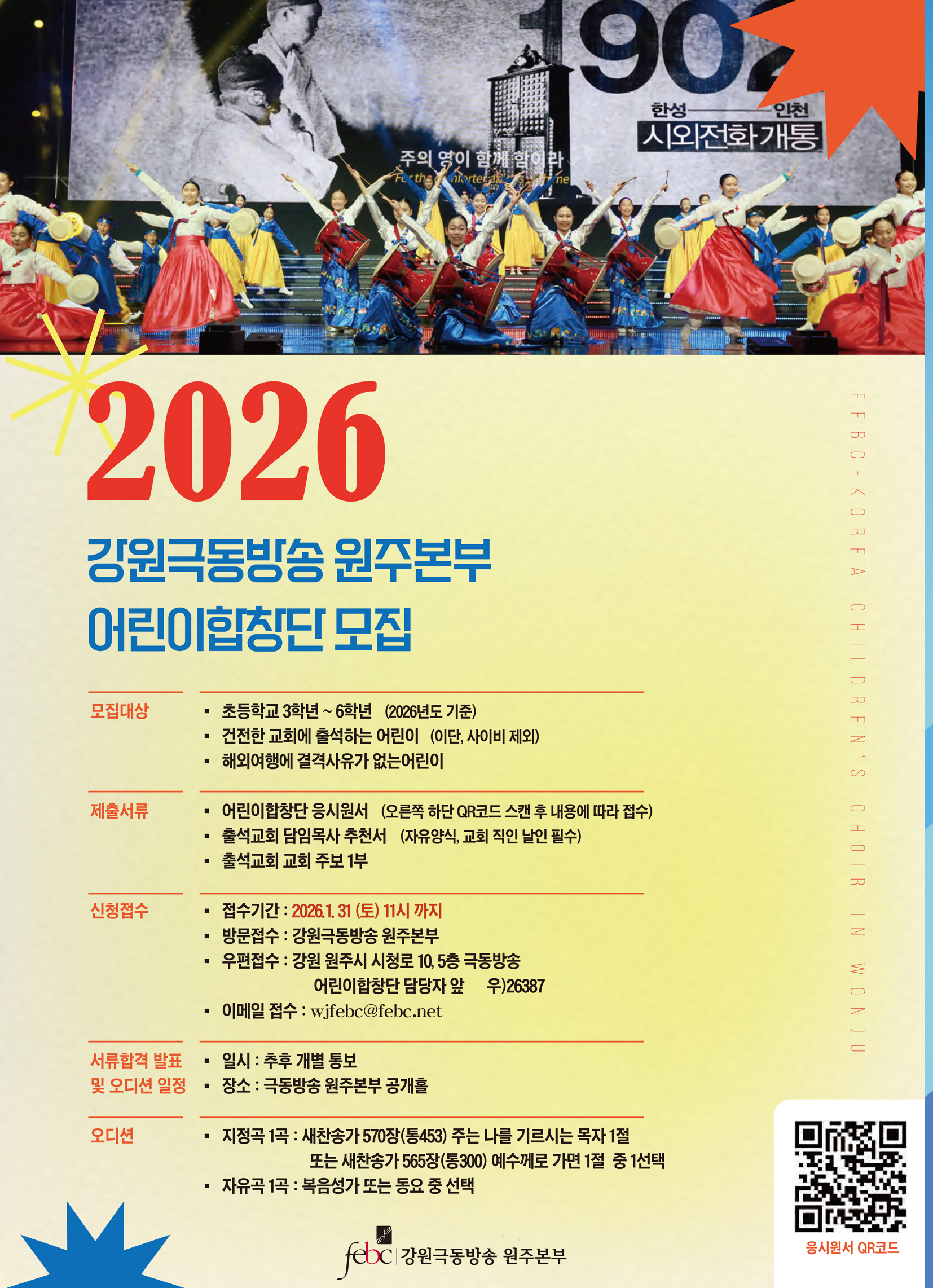강원극동방송 원주 어린이합창단 신입단원 모집