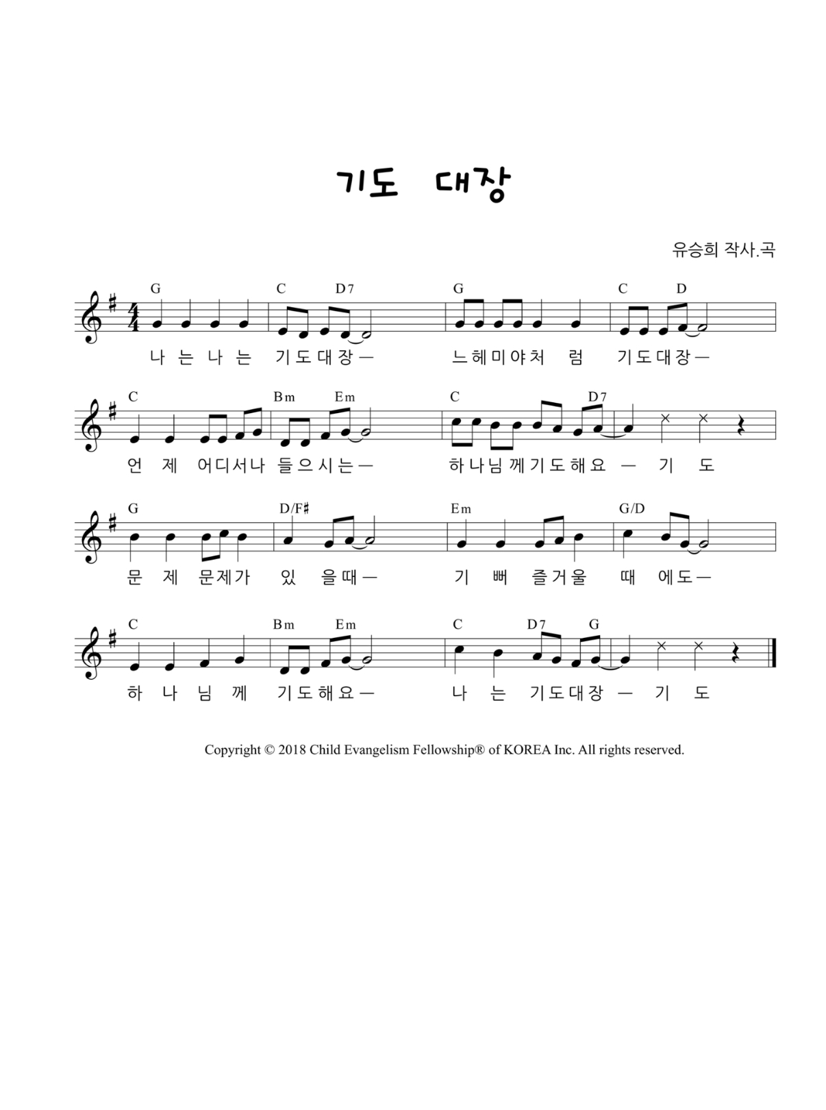 기도 대장 악보