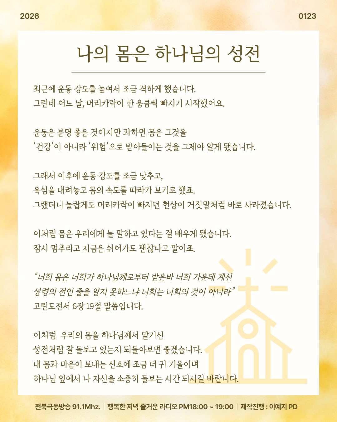 2026년 1월 23일 오프닝 [ 나의 몸은 하나님의 성전 ]