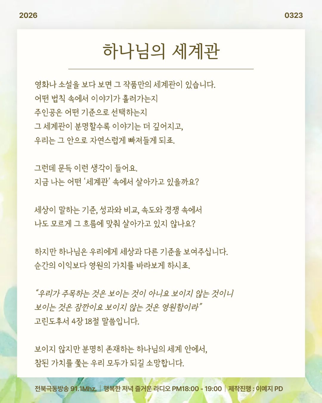 전북극동방송 행저즐라 오프닝 [ 하나님의 세계관 ]