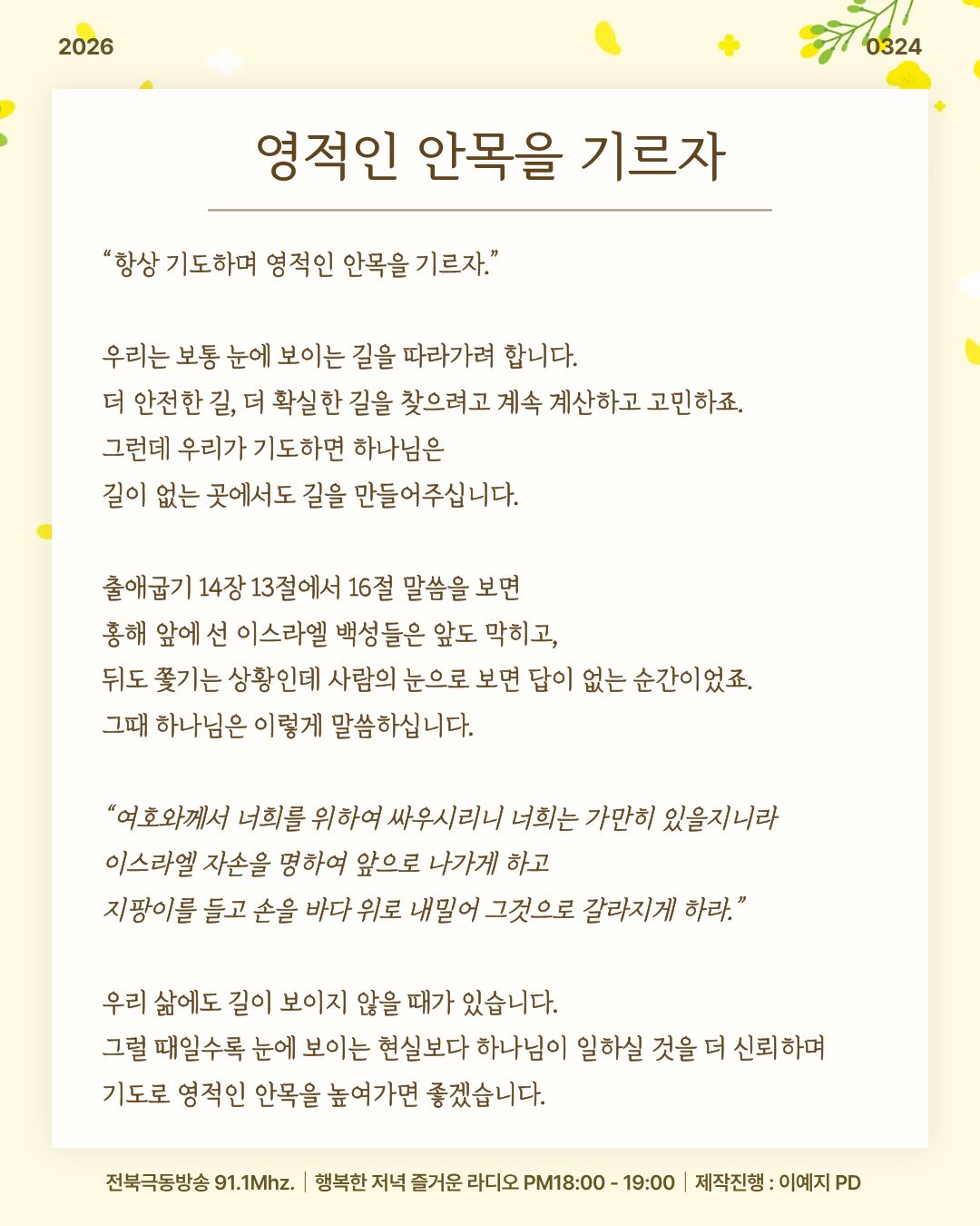 전북극동방송 행저즐라 오프닝 [ 영적인 안목을 기르자 ]