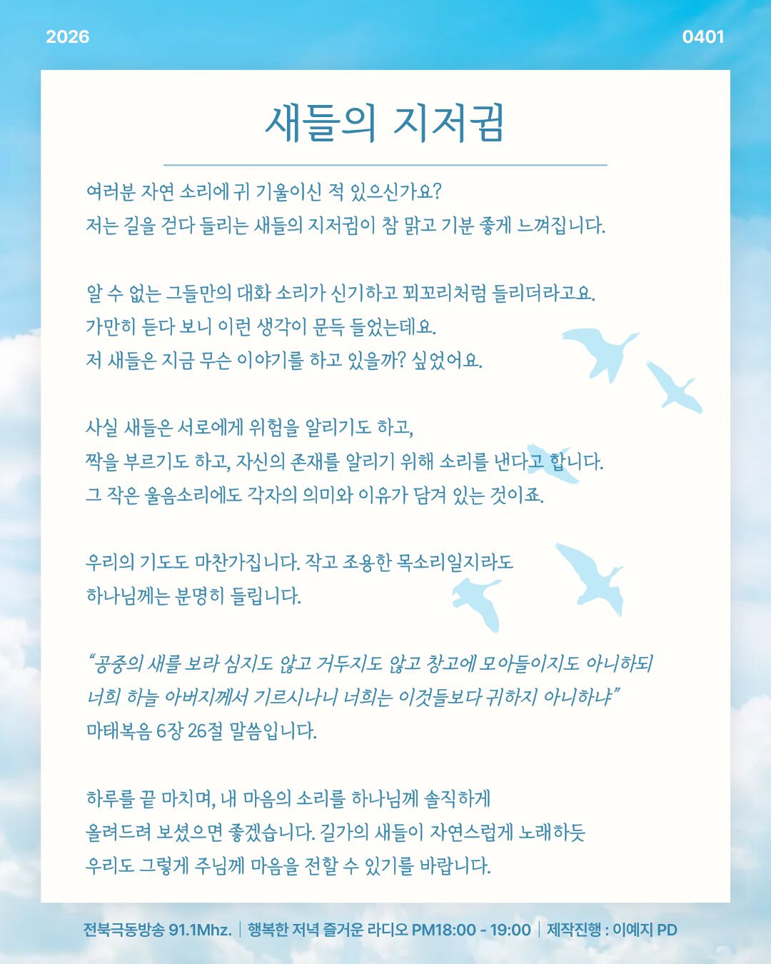 전북극동방송 행복한 저녁 즐거운 라디오!