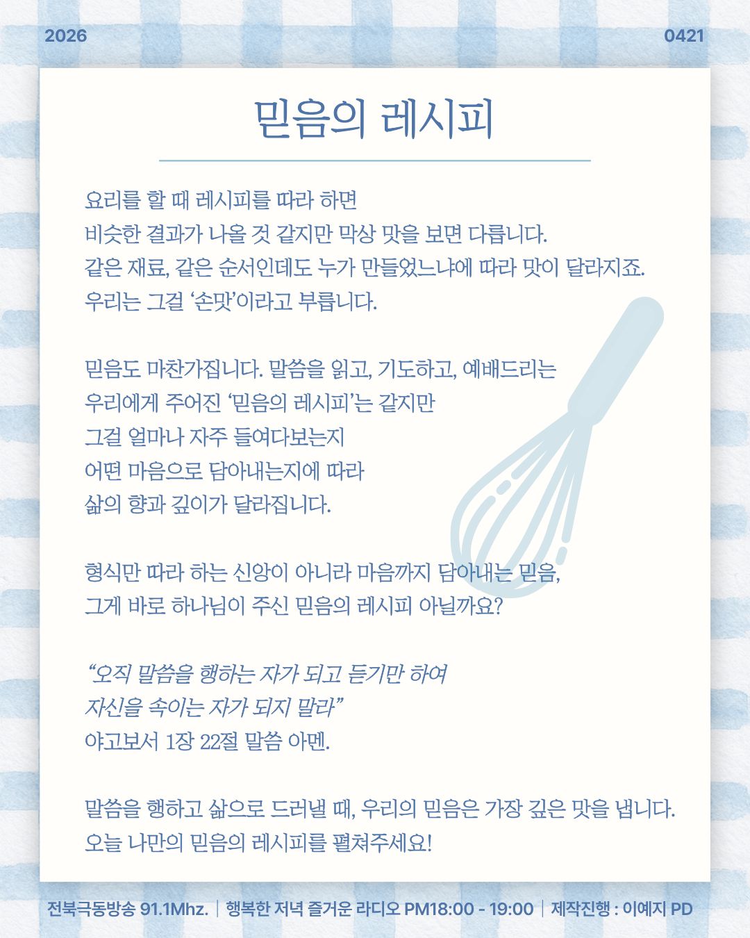 전북극동방송 행저즐라 오프닝 [ 믿음의 레시피 ]