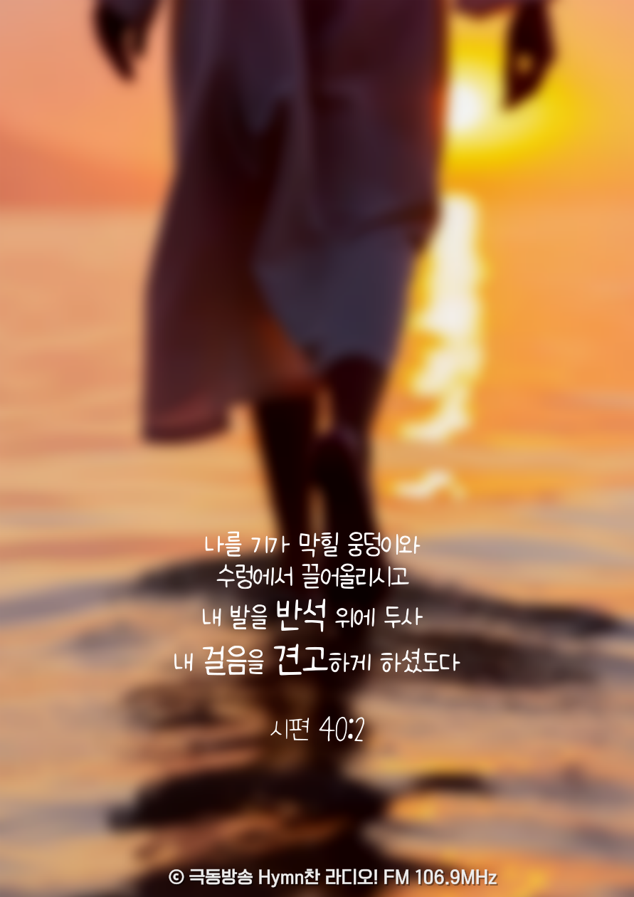 그 누구도 이 수렁 속에서 나를 건져내지 못할 것 같다고 느끼고 계시다면, 우리를 끌어올리시고 우리 발을 말씀의 반석 위에 두사 우리의 걸음을 견고하게 하실 주님을 바라봅시다. 실패한 것 같아도, 아주 넘어진 것 같아도, 주님은 우리를 향한 계획이 있으시며 이 시간 끝에서 기다리고 계십니다. 저와 여러분의 삶에 이 깨달음이 은혜로 부어지기를 소망하면서