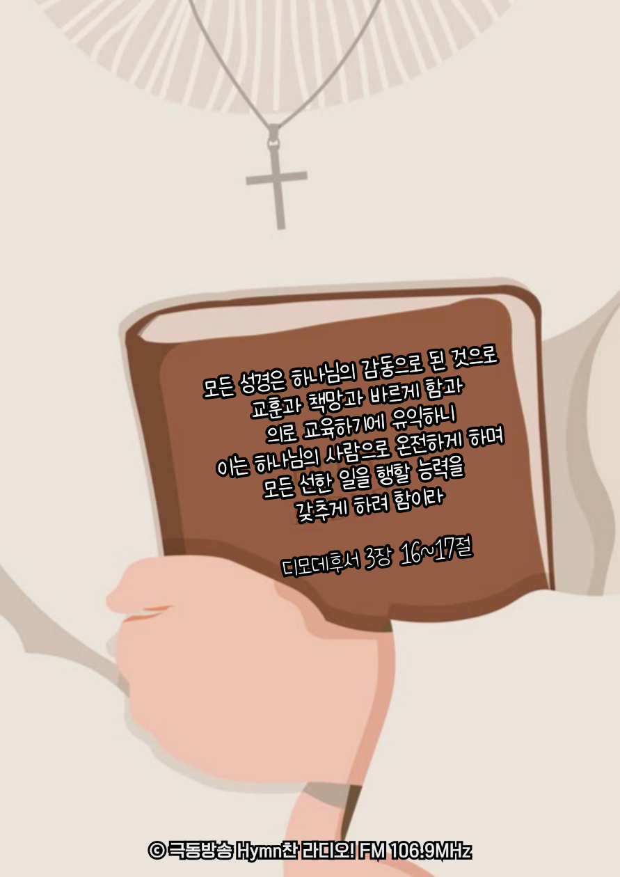 디모데후서 3장 16절에서 17절까지의 말씀입니다. 아멘!
